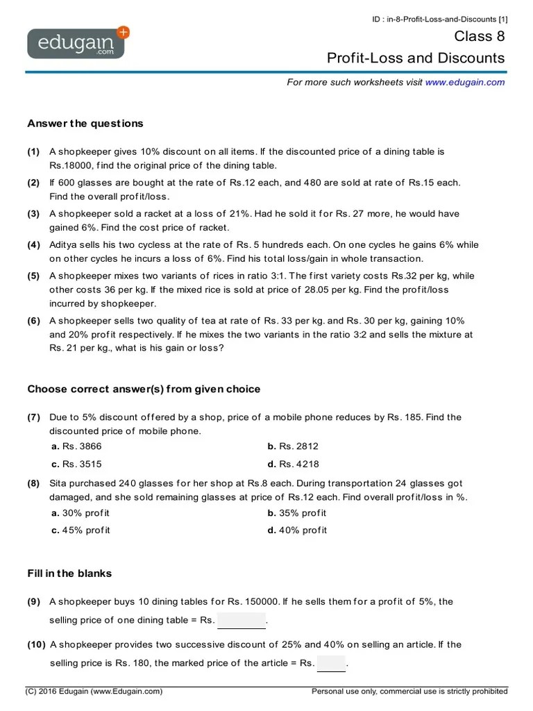 Profit And Loss Worksheet : Markup And Markdown Word Problems Worksheet /